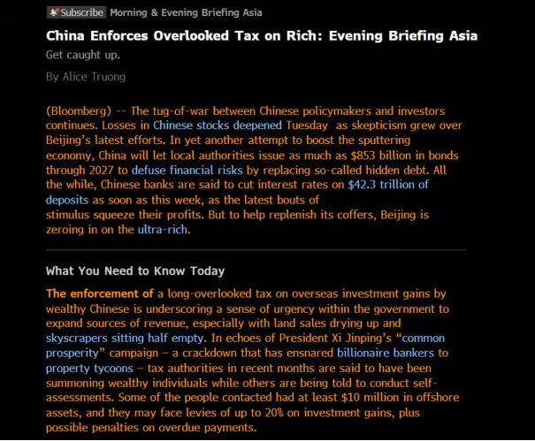 1.https://www.bloomberg.com/news/newsletters/2024-10-15/china-enforces-tax-on-rich-s-overseas-investment-gains-as-revenue-source.